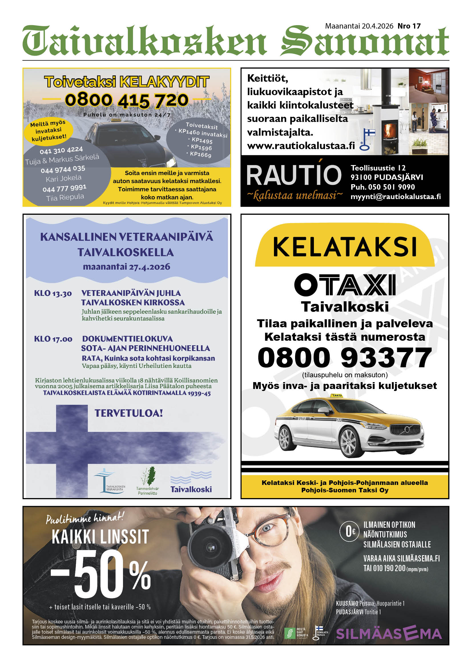 Taivalkosken Sanomat Ma 13.4.2026 Nro 16