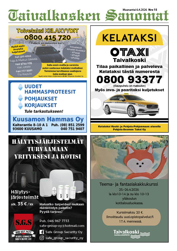 Taivalkosken Sanomat Ma 6.4.2026 Nro 15 Image By admin 2026, Huhtikuu, Lehti Selaa lehteä Lataa pdf-tiedostona